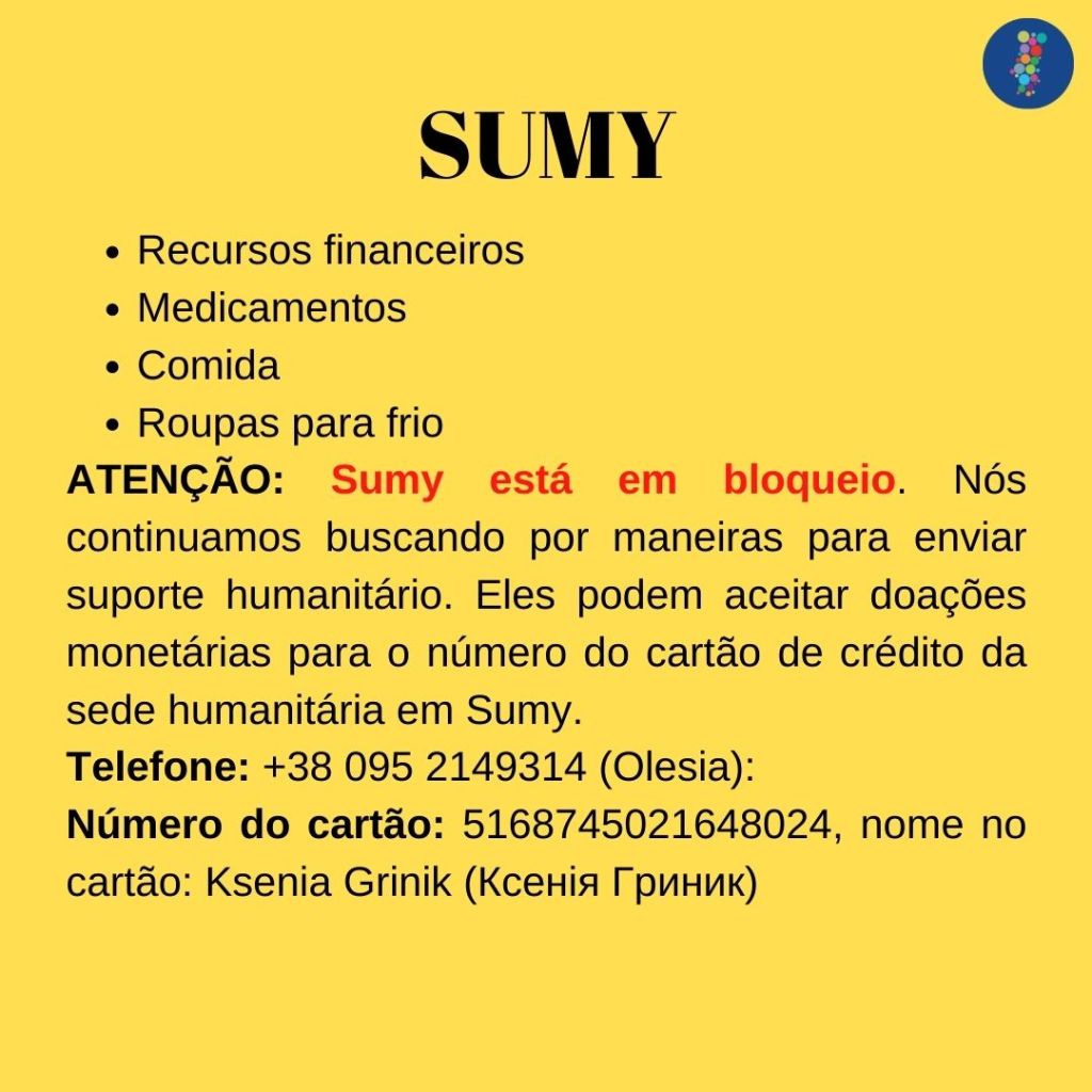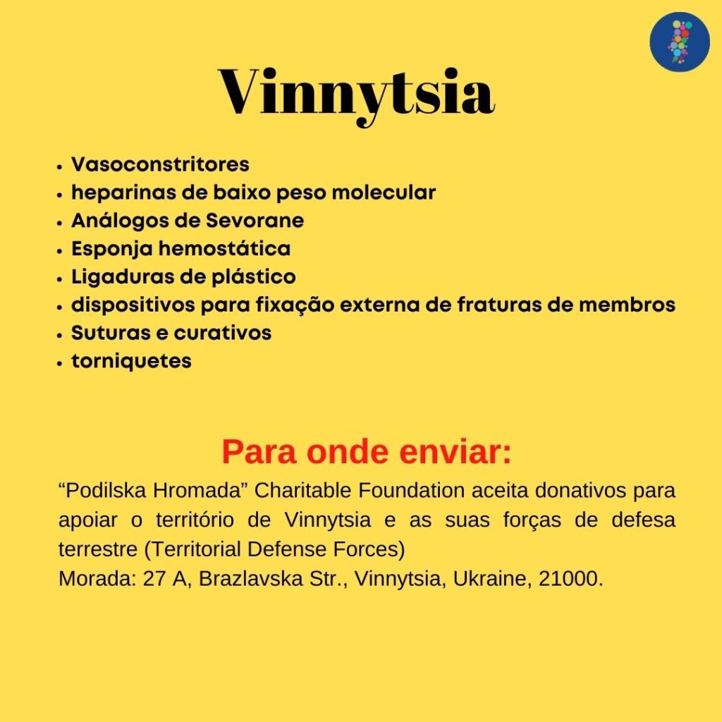 Como rede das cidades Interculturais com apoio do Conselho da Europa, a forma que encontramos para dar o nosso contributo, foi entrar em contato diretamente com as cidades ucranianas que são parte da rede. Deste contato surge a lista de necessidades abaixo. Estimulamos a que possam apoiar da forma que vos for possível! Obrigada.