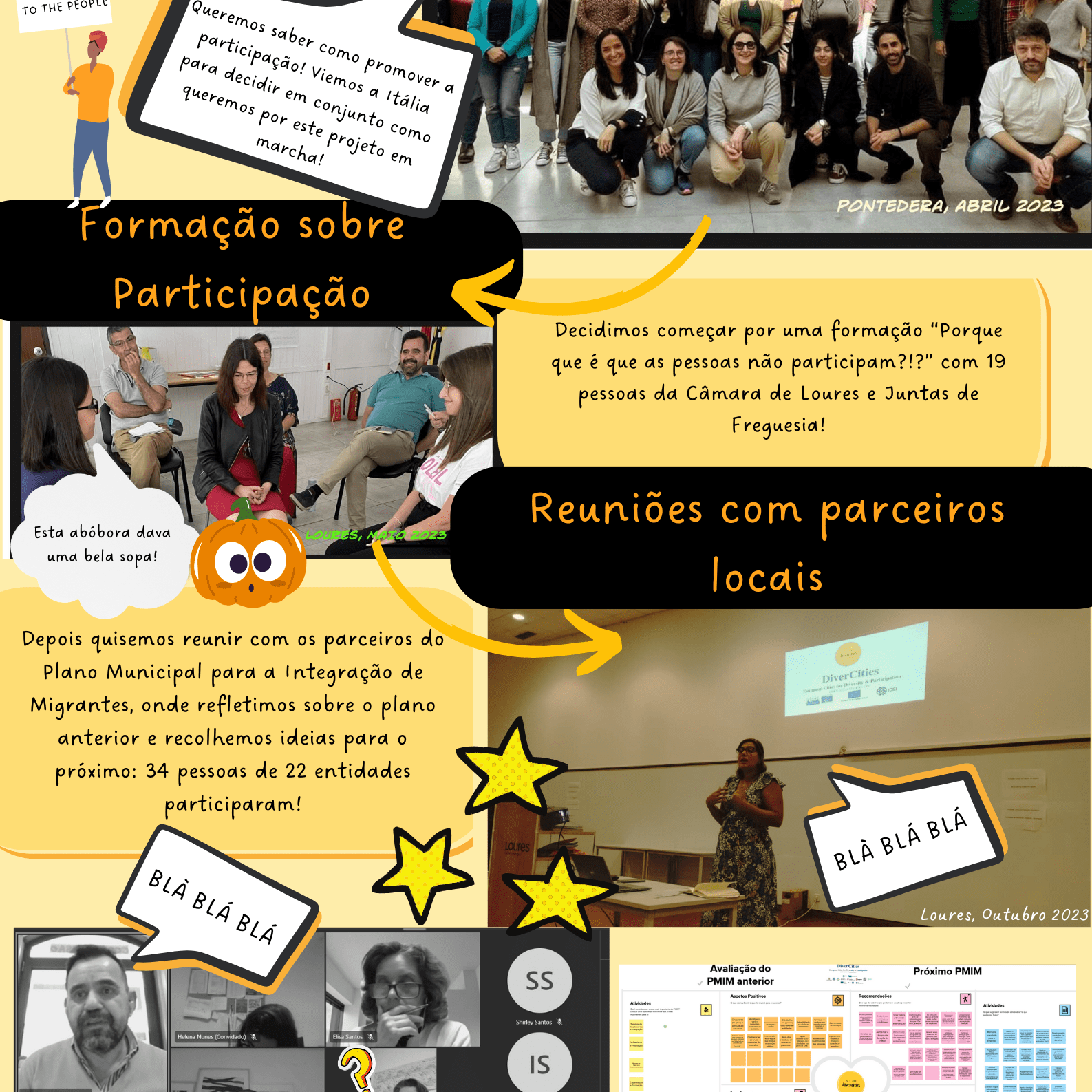 - Desenvolvimento e teste de uma Formação “Porque que é que as pessoas não participam?” em metodologias Participativas (6h) para staff da CM Loures e Juntas de Freguesia locais.